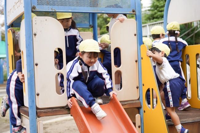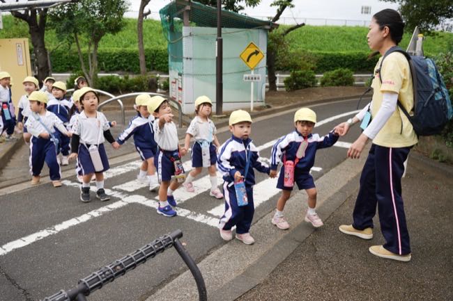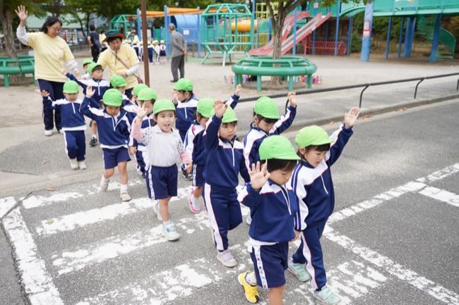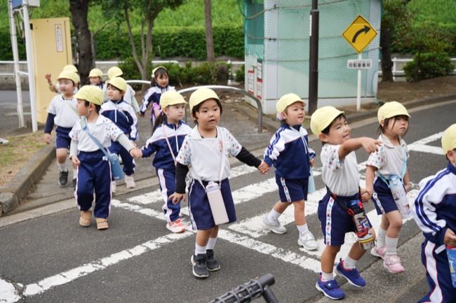 年少組は葛飾区北沼公園(交通公園)へ遠足に行きました。信号をよく見て横断し、交通ルールを守って行動できました。いつもと違う遊具で、たっぷり体を動かして遊びました。
