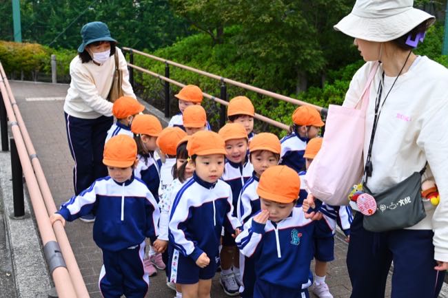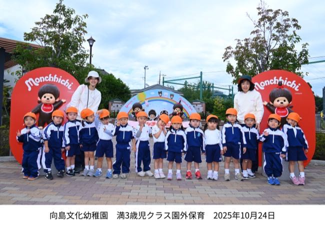 葛飾区のモンチッチ公園へ満3歳児クラスのお友だちが遠足に行きました。はじめての園外活動に心もからだもワクワクしていた子どもたち。かわいい遊具に目を輝かせたくさんの笑顔を見せてくれました。
